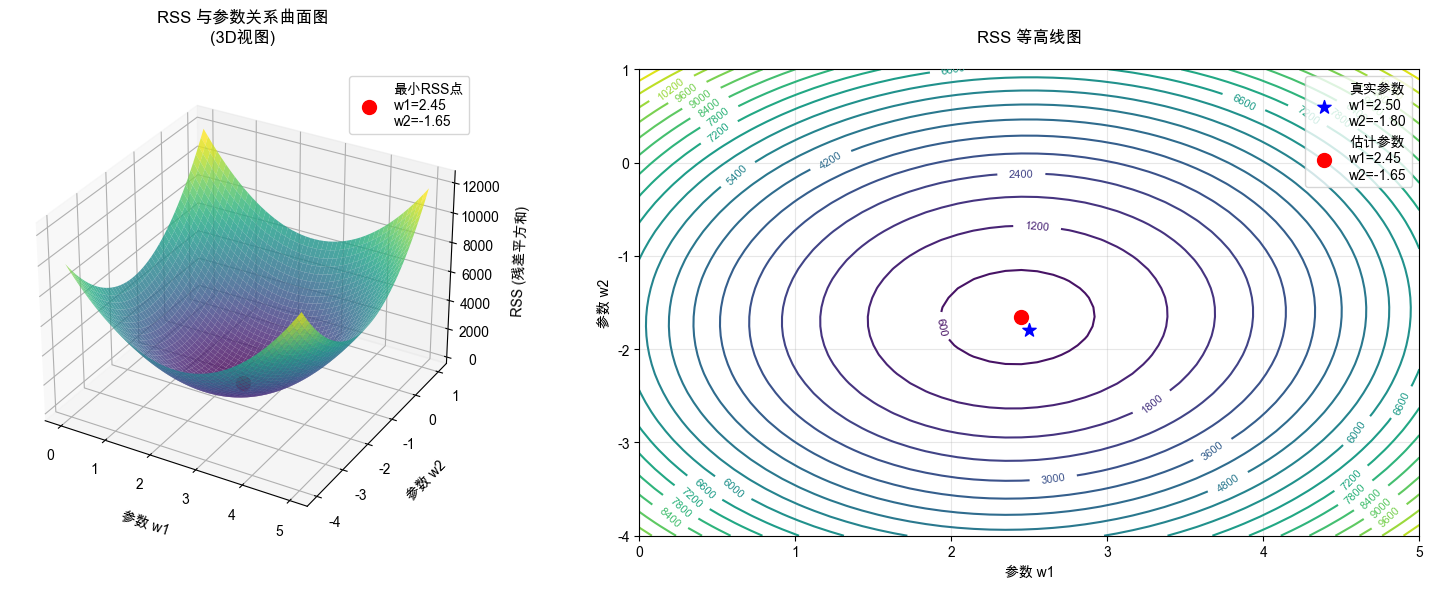 ax1.set_zlabel('RSS (残差平方和)', labelpad=10)