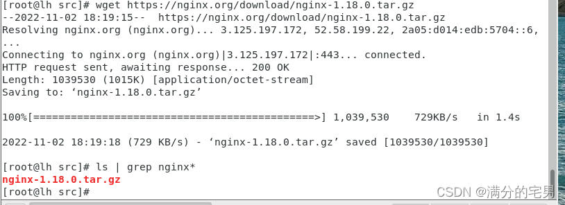 安装:wget https://nginx.org/download/nginx-1.18.0.tar.gz