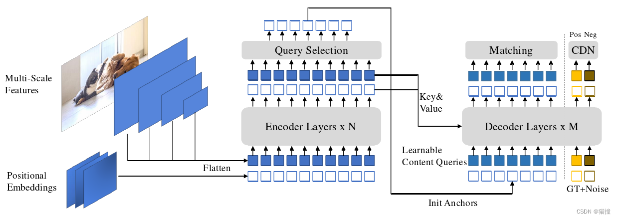 论文下载源码下载csdn解读DAB让我们意识到query的重要性,那么如何学到更好的或者初始化更好的query?DAB-DETR是在思考DETR query理解的问题。它直接把DETR的positional query显示地建模为四维的框(x,y,w,h),同时每一层decoder中都会去预测相对偏移量并去更新检测框,得到一个更加精确的检测框预测,动态更新这个检测框并用它来帮助decoder cross-attention来抽取feature。DN引入了去噪训练来稳定标签分配,如何进一步优化标签分配?