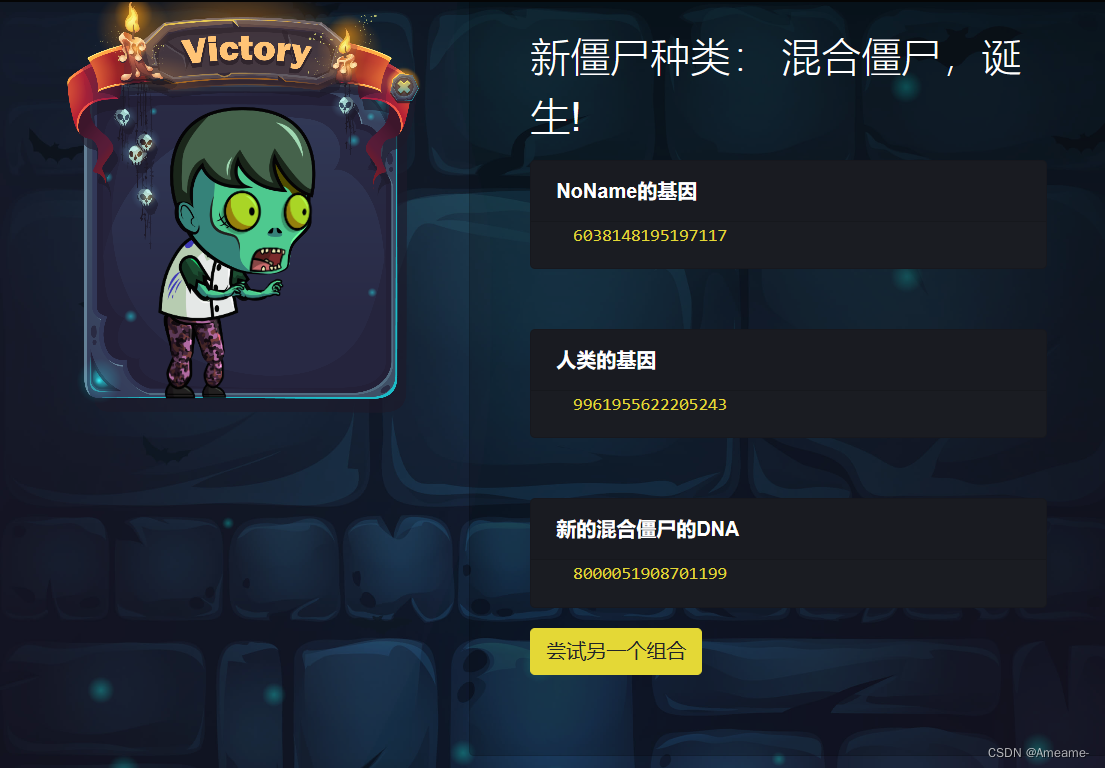 右边是一个简单的猎食演示。点击一个“人”,看看僵尸猎食的时候会发生什么? 可见,新僵尸的DNA是通过从原来的僵尸的DNA, 加上猎物的DNA计算得来的。