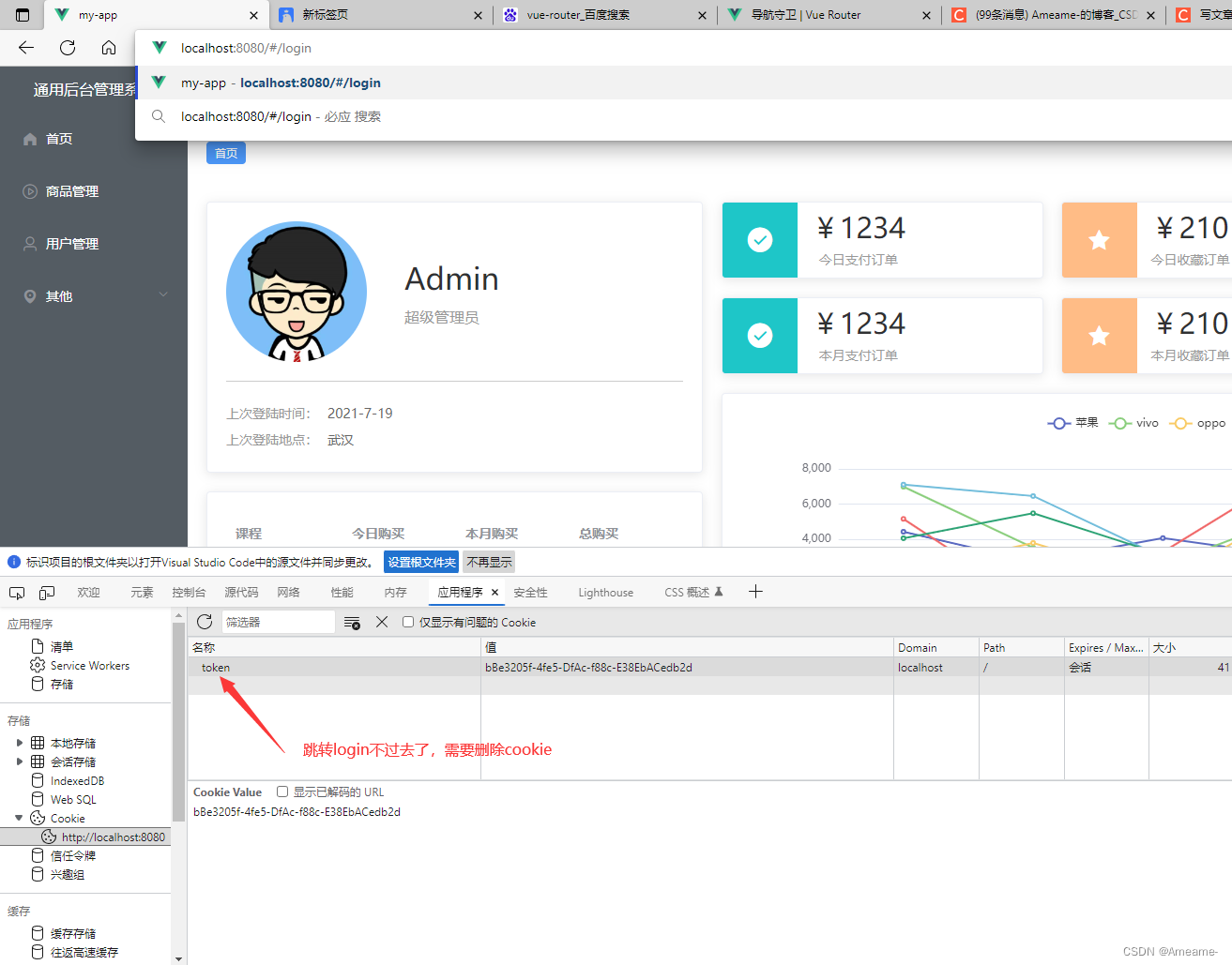 } else if(token && to.name === 'login'){ //token存在,说明用户登录,此时跳转至首页