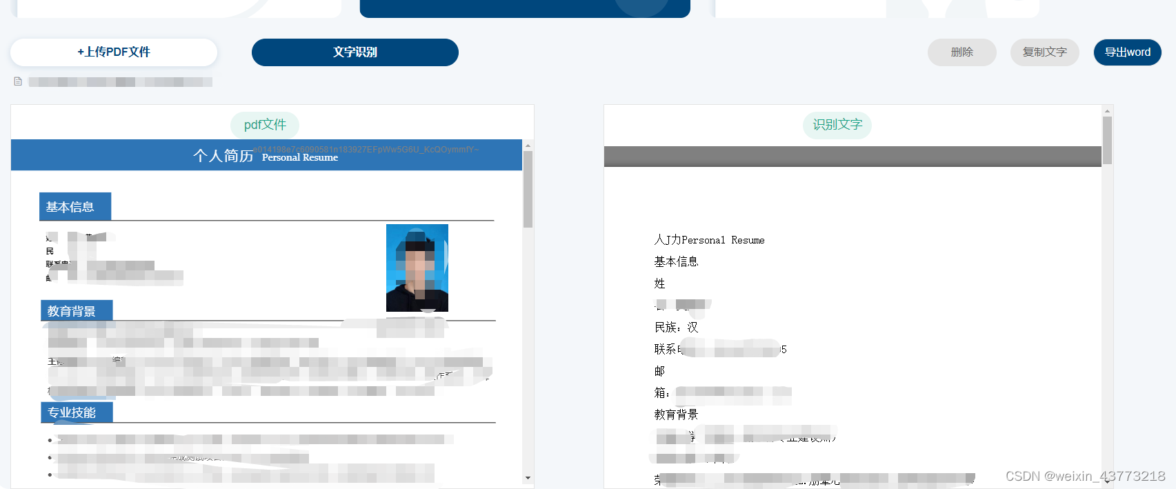 前端预览上传的pdf文件,并根据后端识别pdf后返回的word文件路径,直接在前端解析展示 在前端上传一个pdf文件,后端识别pdf文件,并返回识别后的word文件路径,前端再根据文件路径直接在页面展示解析word文件的结果