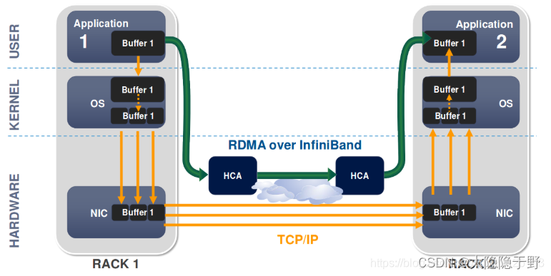 InfiniBand(IB): 从一开始就支持RDMA的新一代网络协议。由于这是一种新的网络技术,因此需要支持该技术的网卡和交换机。