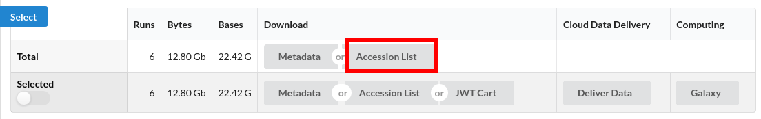 SRA数据选择后可以看到本次需要下载的目的数据为