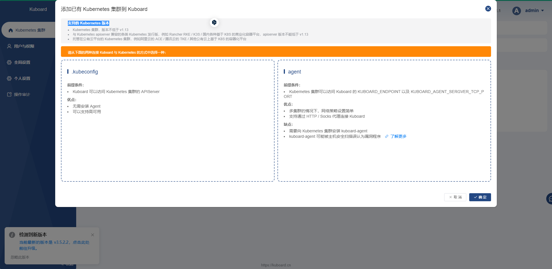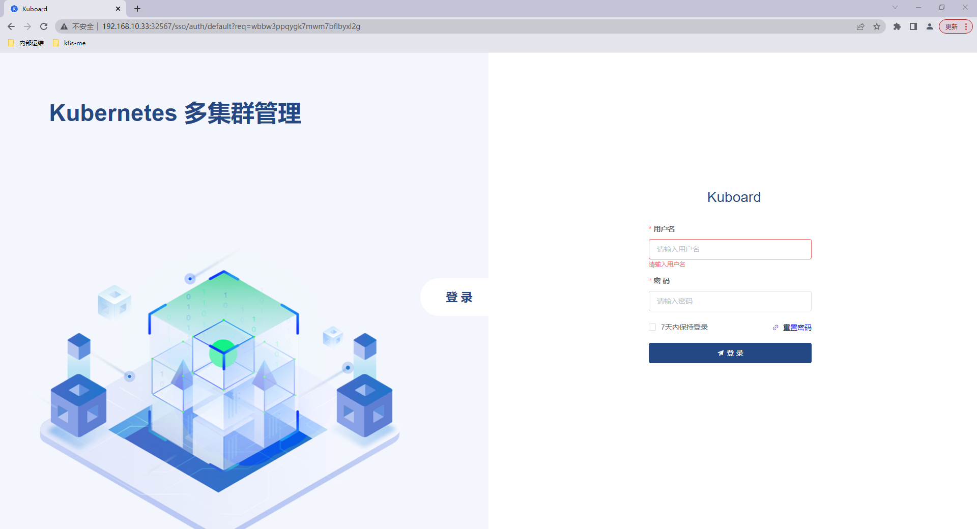默认用户名admin 密码:Kuboard123 (2)登录进来之后需要添加对应的集群