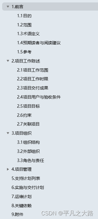 目录 1、总体目录结构 2、重点章节概要示例 2.1 第四章 项目管理 2.2 第六章 实施与交付计划 2.3 第七章 运维计划 1、总体目录结构 2、重点章节概要示例 2.1 第四章 项目管理 2.2 第六章 实施与交付计划 2.3 第七章运维计划