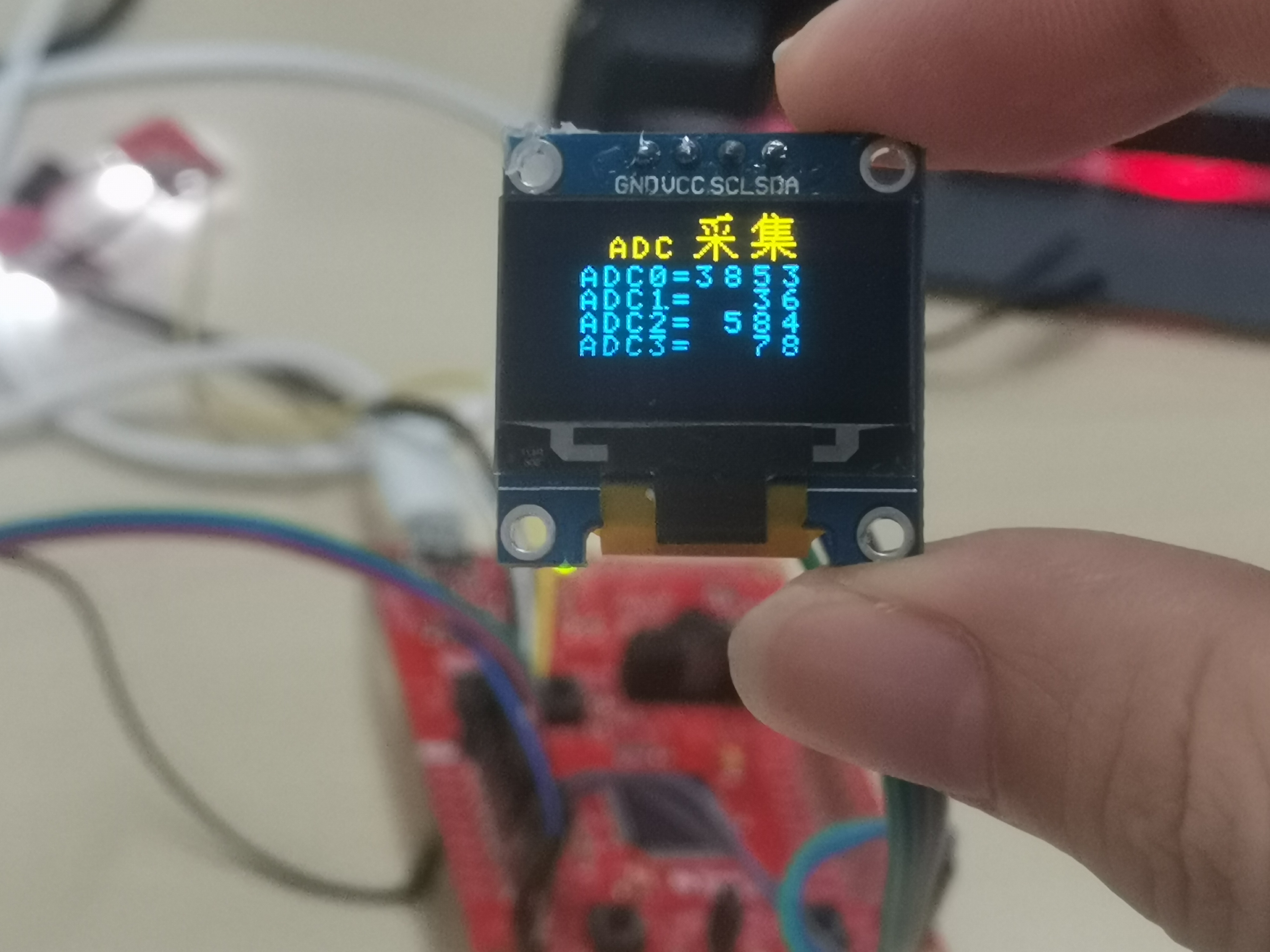 使用MSP430F5529的ADC测量,并用OLED显示传感器输出的模拟量 导语在所有的嵌入式应用中几乎都会用到的一个功能就是ADC模块(模数转换器)。在这里笔者分享用CCS开发环境使用MSP430F5529中的ADC来读取灰度传感器输出的模拟量,然后读取电压并将其显示在OLED上。效果展示MSP430F5529有4个12位ADC通道,分别为P6.0~P6.3。ADC计算公式:ADC转化结果为0-4095,最大值为2的12次方。此外MSP430的ADC有4个转换模式:单通道单次转化,多通道单次转化,单通道多次转化和多通道多次转化。在这里用的是多通道多次转化,毕竟要在