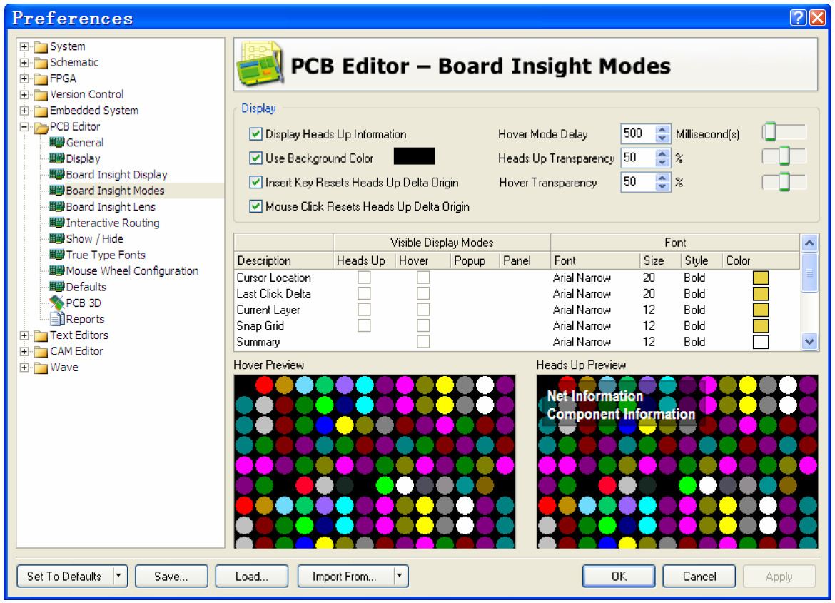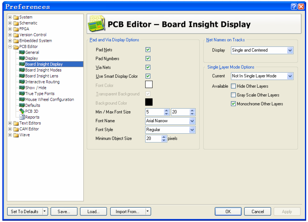 Pad and Via display options: 显示焊盘,过孔的网络名和标号等
