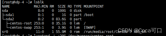 7.最后再df -h检查一遍,成功。(之前忘记截图了,这一步截图是后来又增加几G的截图,不过最后一步也只是检查,并不影响)