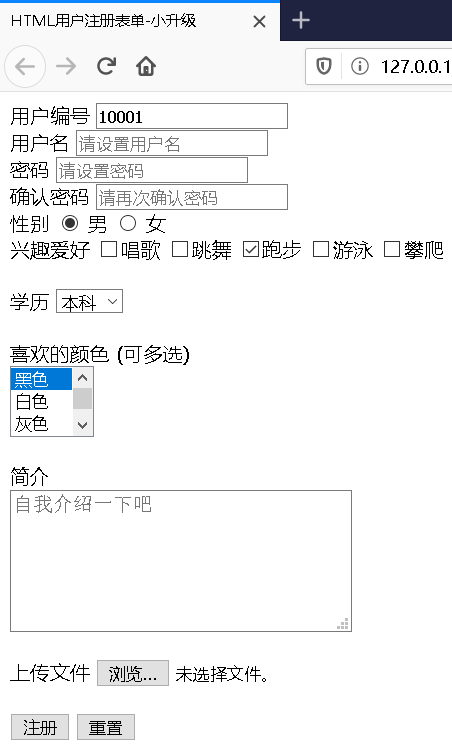 <input type="text" name="username" placeholder="请设置用户名" size="20" maxlength="10" required="required" />