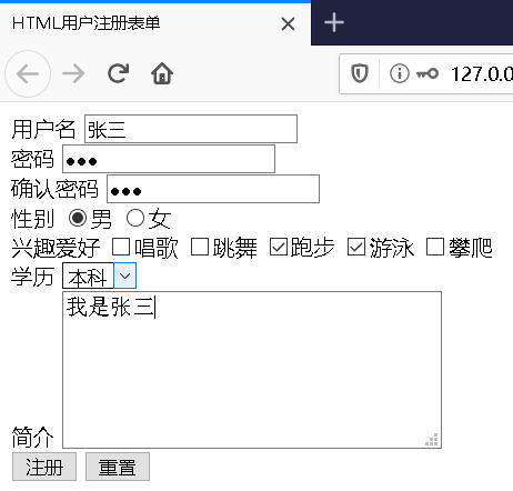 http://loaclhost8080/jd/register?username=张三&userpwd=123&sex=male&hobby=running&hobby=swimming&education=bk