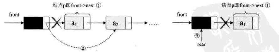 空队列时,front和rear都指向头结点。