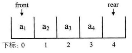 OK,现在我们有了两个指针:front和rear,分别指向队头和队尾。