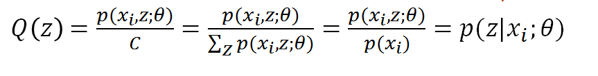 EM算法的原理为先根据假设的θ,估计出z;然后根据z利用最大似然函数更新θ,之后循环迭代直至收敛。因此EM算法求解的关键是“根据θ求出z”和“根据z求出θ”,关于后者通过最大化似然函数即可求解,难点主要在于“根据θ求出z”,因此本节主要对该部分的推导与求解过程进行介绍。