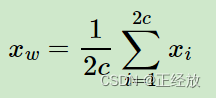 对于从输入层到隐藏层(投影层),我们就直接采用求和取平均值的方式,对2c个词向量进行求和并取平均值