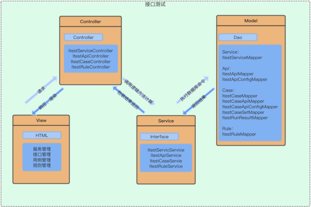 ITest 后端使用 Java 语言 SpringBoot+Mybatis 框架开发,前端 Vue+ElementUI 实现,遵循 MVC 结构,Controller 接收请求,Model 处理数据,View 展示结果。