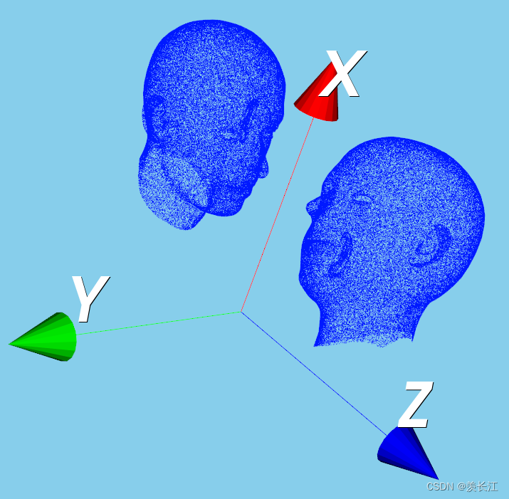 旋转矩阵:右边矩阵是点云的原始坐标,左边的是旋转矩阵可视化:绕x轴旋转90度。