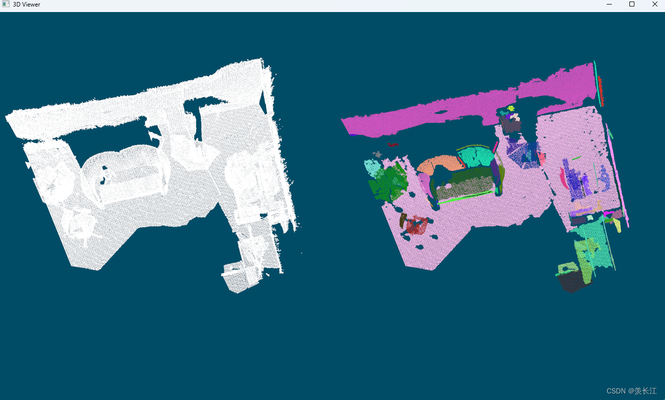 可视化结果:不同的点云数据用不同的点云大小来区分。