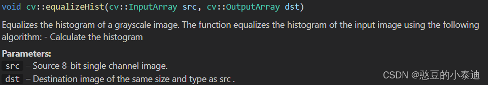 cv::InputArray mask:掩码,大小和 image 一致,其中把需要处理的部分部分指定为 1,不需要处理的部分指定为0,一般设置为 None,表示处理整幅图像;