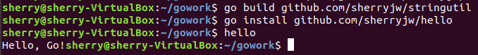 安装 hello 程序,此时 stringutil 包也会被自动安装: