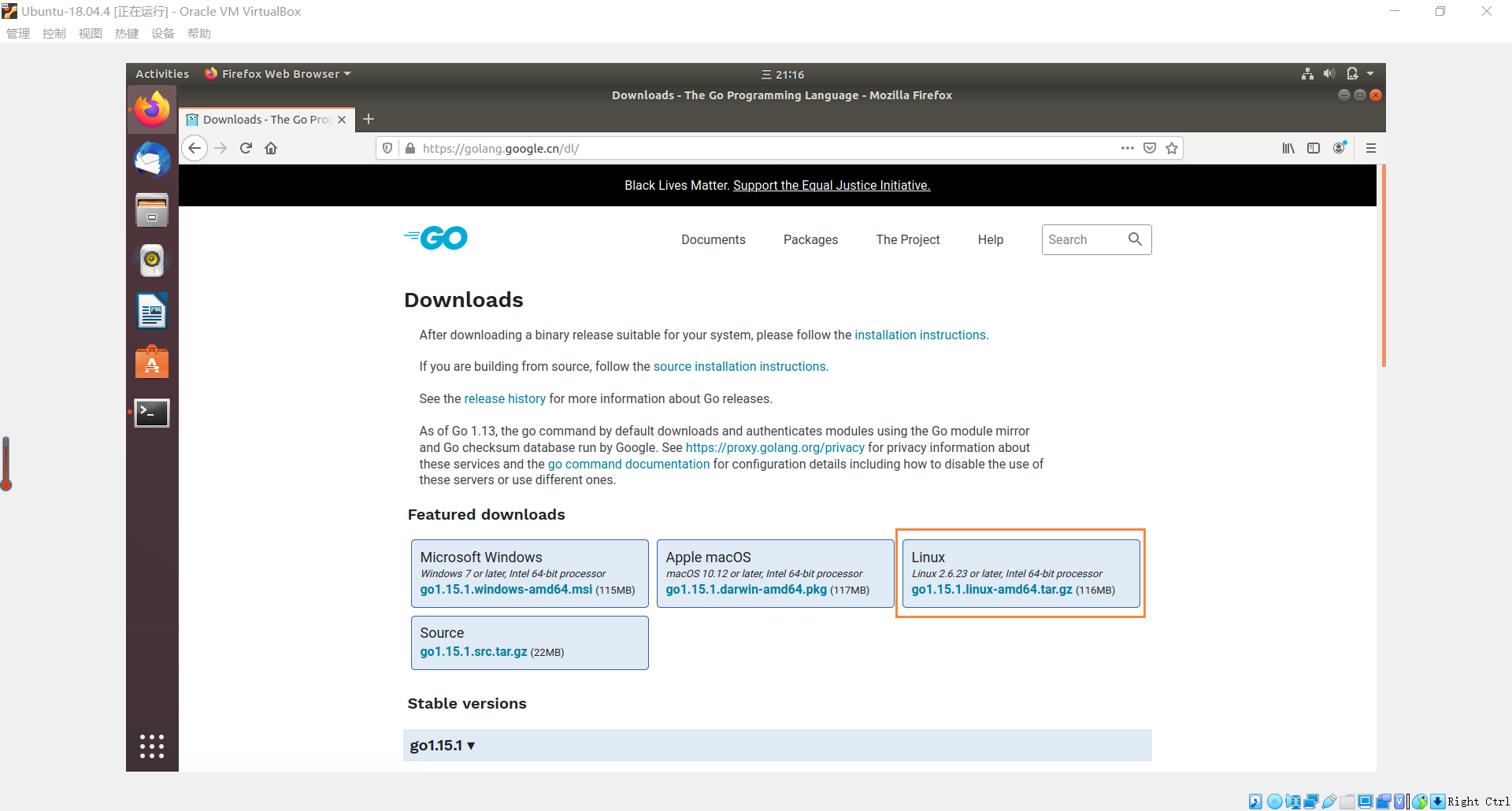 访问 Go官方镜像站下载 Linux 版本的golang。