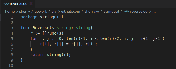 在该目录中创建名为 reverse.go 的文件,内容如下: