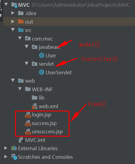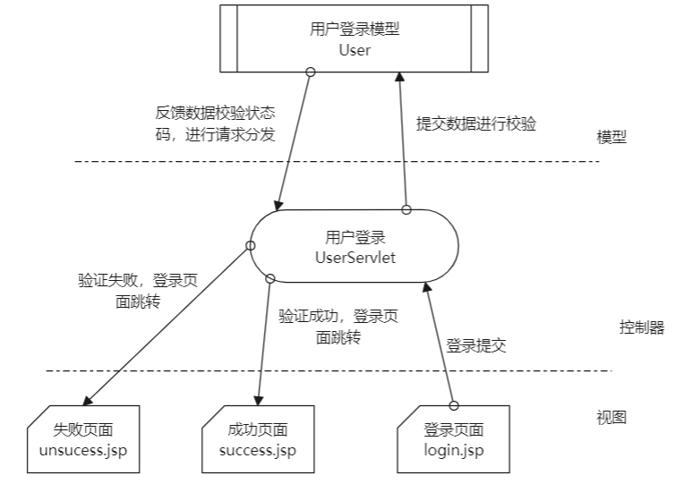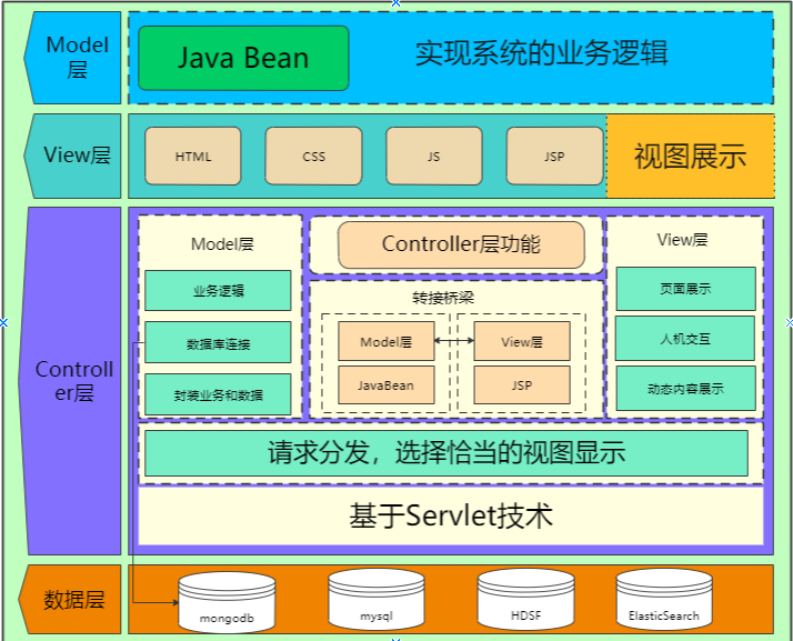 Control层:Model与View之间沟通的桥梁,它可以分派用户的请求并选择恰当的视图以用于显示,同时它也可以解释用户的输入并将它们映射为模型层可执行的操作(Servlet)