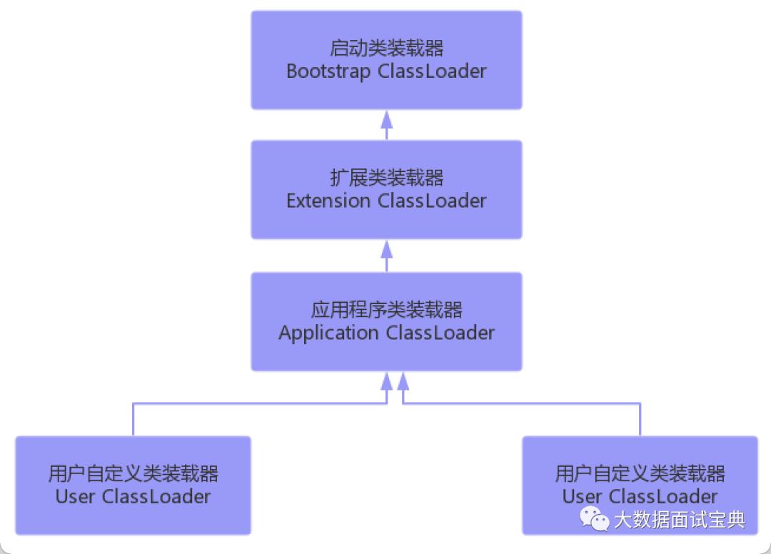 无论类加载器的类型如何划分,在程序中我们最常见的类加载器结构主要是如下情况: