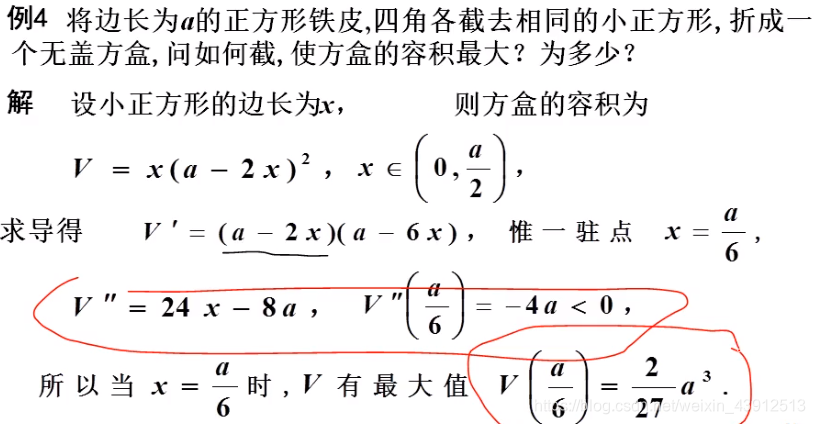 2. 求最大值,最小值步骤:求助定义域内部的驻点、不可导点 -> 求出端点的函数值 -> M=max{f(x)...f(a),f(b)}, m=min{f(x)...f(a),f(b)}