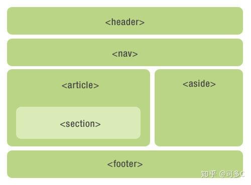 header代表“网页”或“section”的页眉。通常包含h1-h6元素或hgroup,作为整个页面或者一个内容块的标题。也可以包裹一节的目录部分,一个搜索框,一个nav,或者任何相关logo。footer元素代表“网页”或“section”的页脚,通常含有该节的一些基本信息,譬如:作者,相关文档链接,版权资料。如果footer元素包含了整个节,那么它们就代表附录,索引,提拔,许可协议,标签,类别等一些其他类似信息。hgroup元素代表“网页”或“section”的标题,当元素有多个层级时,该元素可以将h1到h6元素放在其内,譬如文章的主标题和副标题的组合nav元素代表页面的导航链接区域。用于定义页面的主要导航部分。aside元素被包含在article元素中作为主要内容的附属信息部分,其中的内容可以是与当前文章有关的相关资料、标签、名词解释等。(特殊的section)section元素代表文档中的节或段,“段”可以是指一篇文章里按照主题的分段;“节”可以是指一个页面里的分组。article元素最容易跟section和div容易混淆,其实article代表一个在文档,页面或者网站中自成一体的内容,其目的是为了让开发者独立开发或重用。譬如论坛的帖子,博客上的文章,一篇用户的评论,一个互动的widget小工具。(特殊的section)address代表区块容器,必须是作为联系信息出现,邮编地址、邮件地址等等,一般出现在footer。h1-h6因为hgroup,section和article的出现,h1-h6定义也发生了变化,允许一张页面出现多个h1。