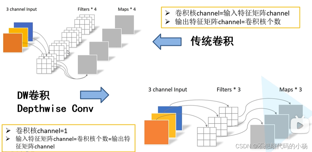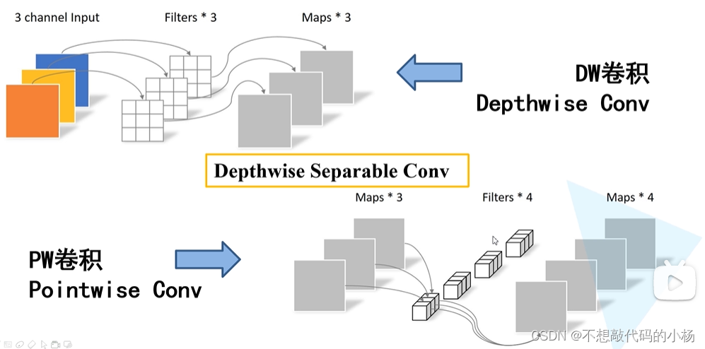 深度可分离卷积主要由两部分构成:DW卷积和PW卷积
