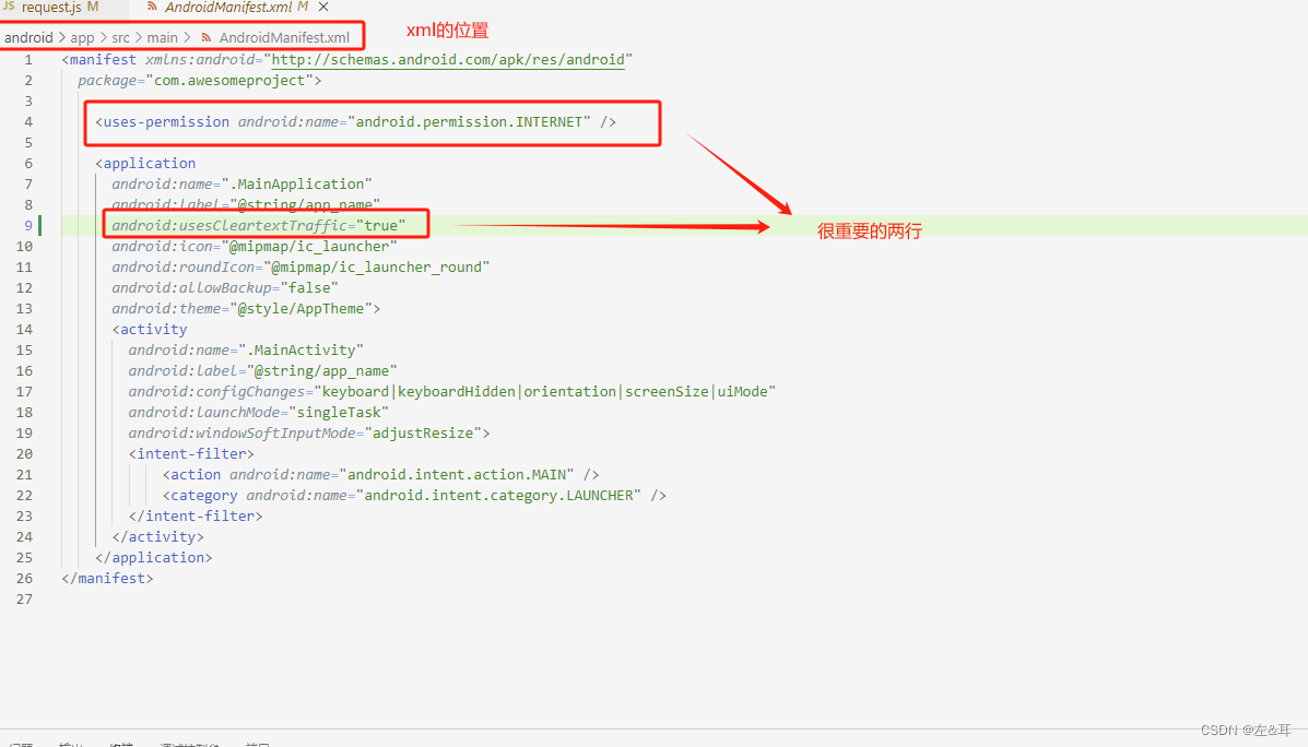 react native 中打的apk包无法连接服务的原因可能是AndroidManifest.xml没有配置 eact native 中打的apk包无法连接服务的原因可能是AndroidManifest.xml没有配置