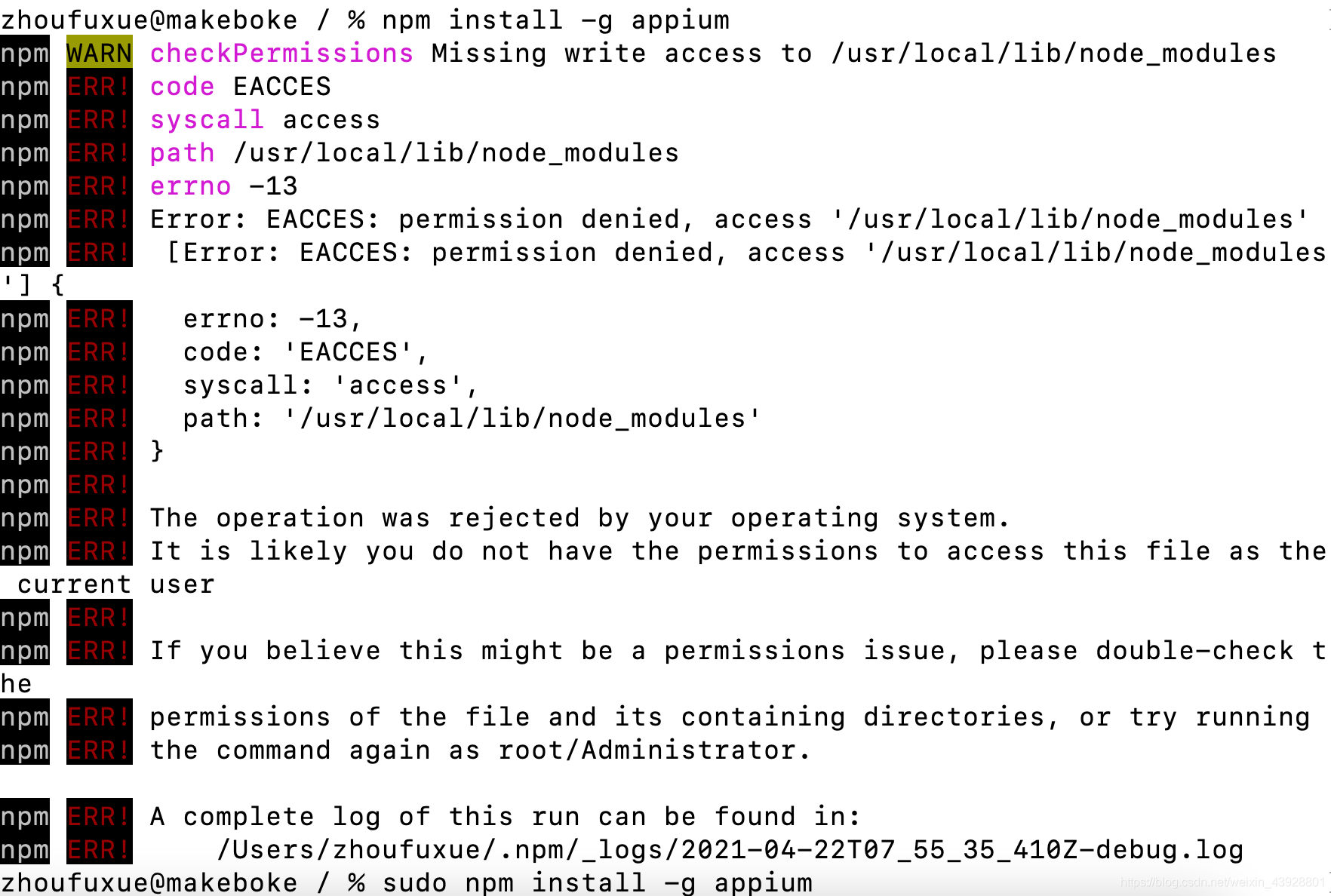 一开始报错,展示没有权限 加上 sudo