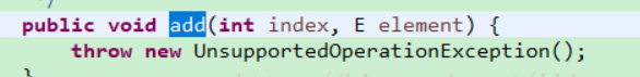 可以看到,他和java.util.ArrayList都继承至AbstractList抽象类,但是他并没有实现add方法和remove方法,当我们调用add方法的时候,他实际调用的是父类AbstractList的add方法