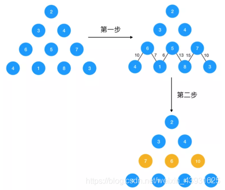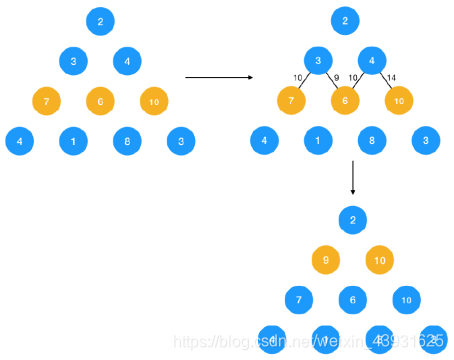 动态规划求解:自底向上,相邻元素取较小者,替换上层对应元素,最终返回顶层元素