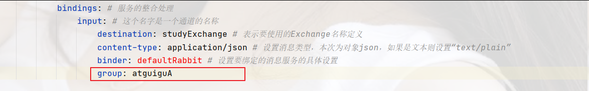 binder: defaultRabbit # 设置要绑定的消息服务的具体设置