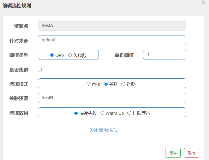 "strategy":0, 流控模式 0表示直接,1表示关联,2表示链路
