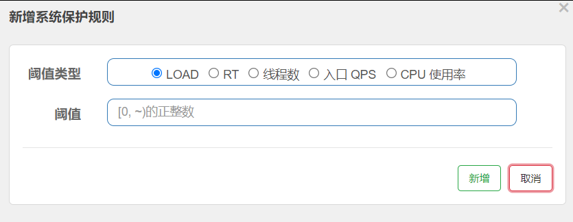 入口QPS:当单台机器上所有入口流量的QPS达到阈值即触发系统保护。