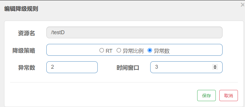 异常数:(分钟统计)超过阈值时触发降级,时间窗口结束后关闭降级