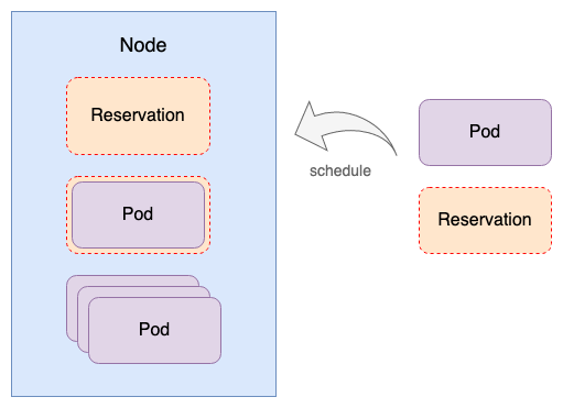 在 Koordinator v0.6 中 ,我们基于原有 v0.5 版本完成的资源预留 API 设计方案[3],在不侵入 Kubernetes 已有的机制和代码前提下,实现了资源预留的原子能力(Reservation)。资源预留在容量管理、碎片优化、调度成功率和重调度等场景有重要作用: