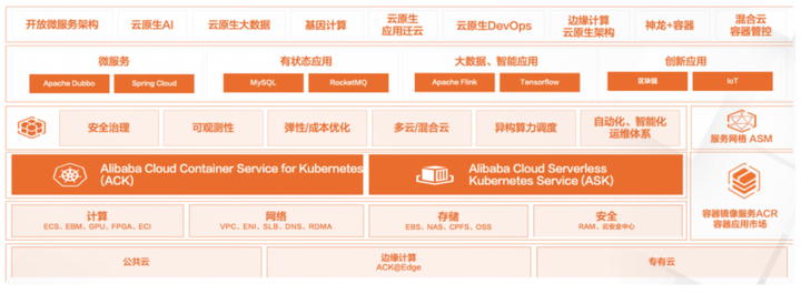 相比于依赖虚机自建集群而言,由阿里云提供的 ACK 服务,有着更优弹性、更优韧性、免运维、更高效的资源管理等优点,同时无缝集成了大量阿里云产品。