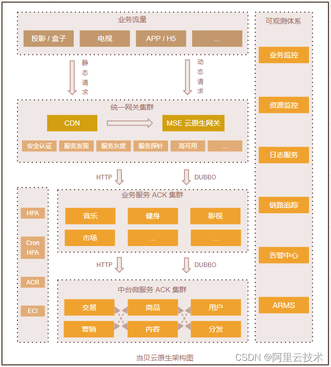当贝对系统稳定性、业务连续性有着极高要求。随着流量快速增加,特别是在一些如春节联欢晚会这种情况下,流量往往以十倍乃至数十倍激增,对稳定性和容量规划形成极大压力。