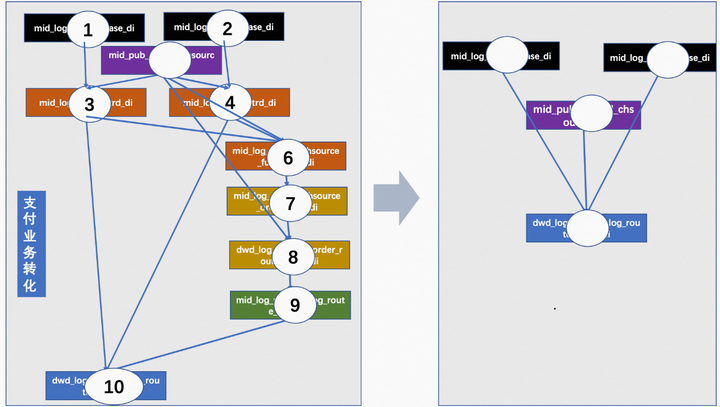 以支付宝支付线来讲,最初总计运行两个来小时,加工逻辑步骤有近十来个任务。后续进行了udf优化并逻辑合并为一个script,图2右部分。