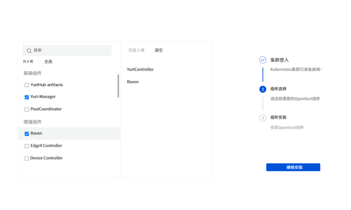 为 OpenYurt 在现有的 helm 安装基础上提供一套基于 dashboard 的安装方式。用户首次打开 web console 之后,会显示 Openyurt 安装部署的相关信息。在 web console 界面上,用户可以选择需要安装的 OpenYurt 组件,点击安装自动完成 OpenYurt 安装部署流程。