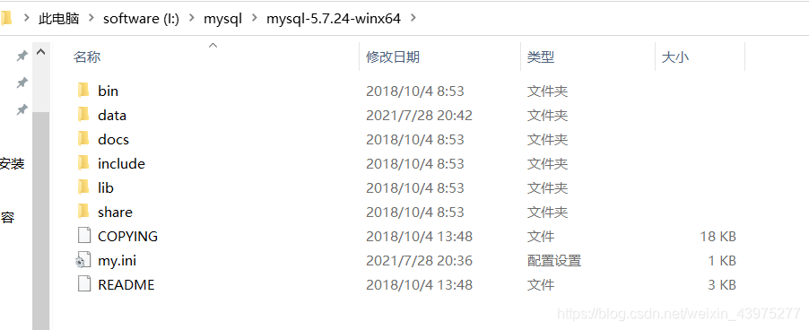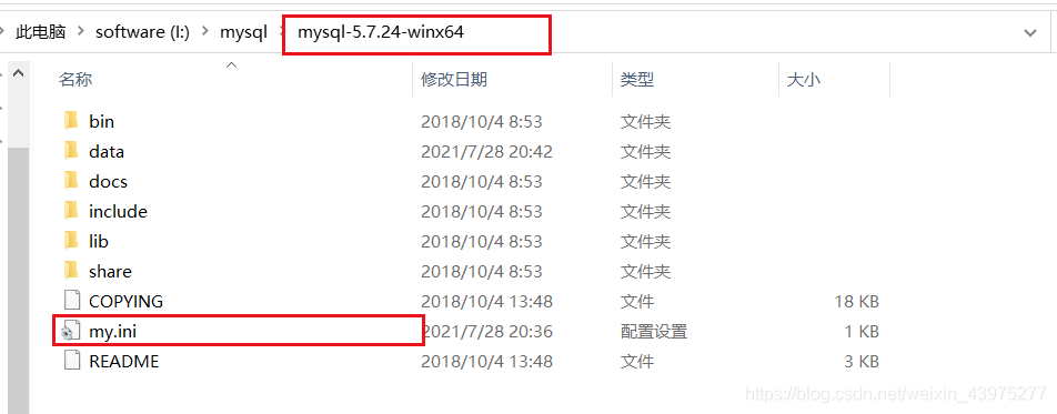 5.接下来创建my.ini文件根路径下,并且添加内容