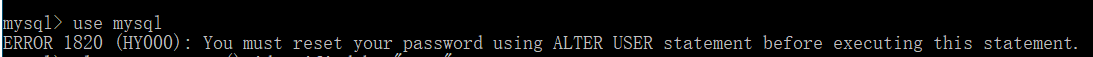 12.输入use mysql,出现错误,这是因为还要重设密码