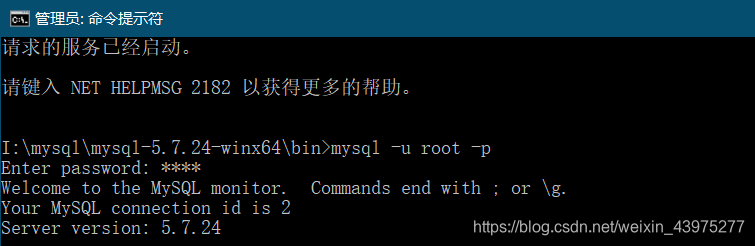 mysqld -install7.接着输入一下命令,成功不会有提示的
