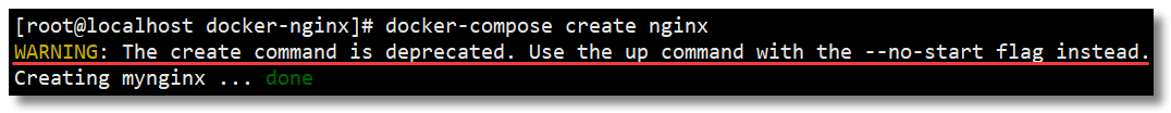 docker-compose create 为服务创建容器,已不推荐使用。推荐使用 docker-compose up 来实现该功能。
