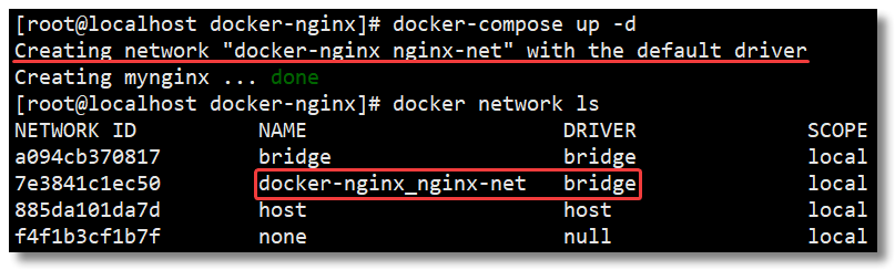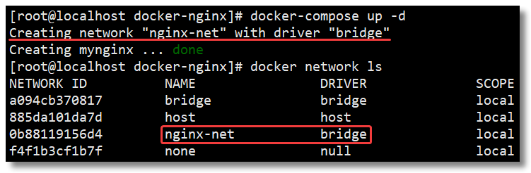 name: nginx-net # 网络名称,默认为"工程名称_网络条目名称"
