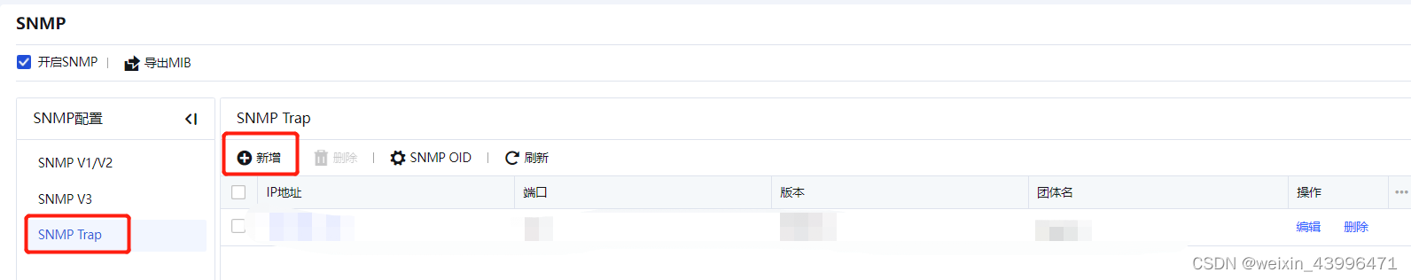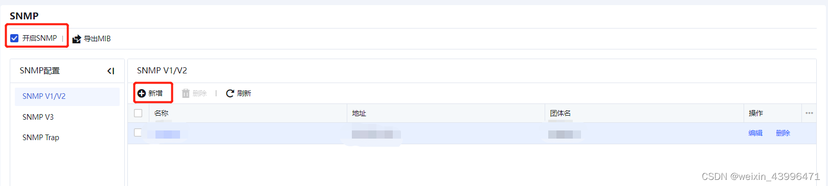 1)选择“SNMP v1/v2”,勾选“开启SNMP”